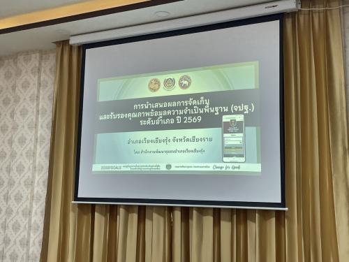 นางสาวมินทิรา ภดาประสงค์ นายอำเภอเวียงเชียงรุ้ง เป็นประธานในการประชุมคณะทำงานบริหารการจัดเก็บข้อมูลความจำเป็นพื้นฐาน (จปฐ.) ระดับอำเภอ ของอำเภอเวียงเชียงรุ้ง ตามโครงการนำเสนอผลการจัดเก็บและรับรองคุณภาพข้อมูลความจำเป็นพื้นฐาน (จปฐ.) ระดับอำเภอ ประจำปี 2569 โดยมีหัวหน้าส่วนราชการ ผู้บริหารองค์กรปกครองส่วนท้องถิ่น กำนัน ผู้นำท้องที่ ผู้นำ อช.เข้าร่วมประชุมอย่างพร้อมเพรียง ในการนี้สำนักงานพัฒนาชุมชนอำเภอเวียงเชียงรุ้ง นำโดยนางสาวชนิดา เทพพา พัฒนาการอำเภอเวียงเชียงรุ้ง พร้อมด้วยเจ้าหน้าที่สำนักงานพัฒนาชุมชนอำเภอ ได้เข้าประชุมอย่างพร้อมเพรียงและได้นำเสนอผลการจัดเก็บข้อมูล จปฐ. ของอำเภอเวียงเชียงรุ้ง ให้แก่คณะทำงานฯ ได้ดำเนินการร่วมตรวจสอบและรับรองความถูกต้องของข้อมูลที่จัดเก็บ เพื่อหาแนวทางการช่วยเหลือครัวเรือนตกเกณฑ์ จปฐ. ของอำเภอเวียงเชียงรุ้ง เพื่อดำเนินการส่งข้อมูลให้จังหวัดเชียงรายดำเนินการรับรองข้อมูลในระดับจังหวัดต่อไป